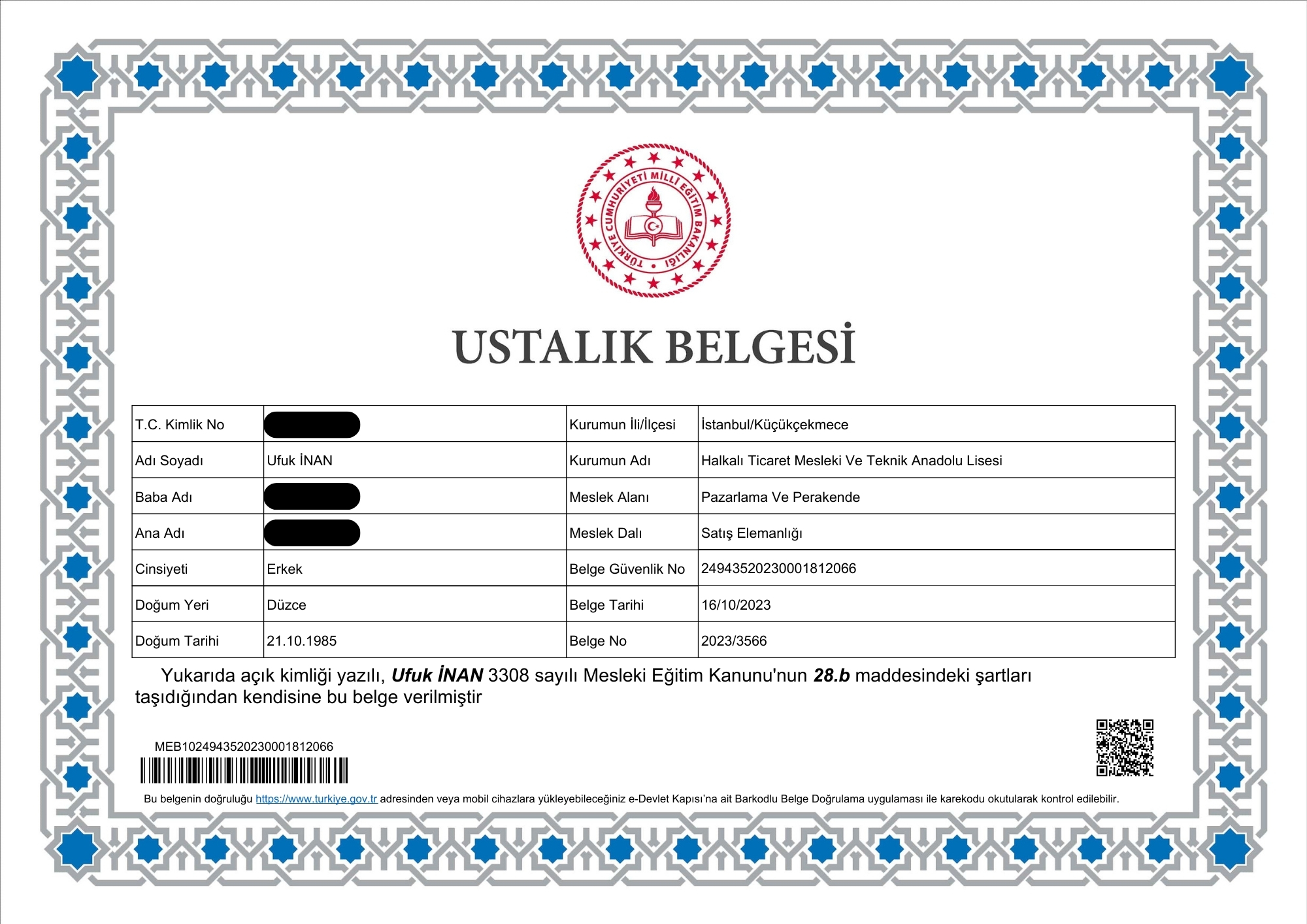 Ticaret Bakanlığı onaylı yetki belgelerim ve RE/MAX uzmanlık sertifikalarım.